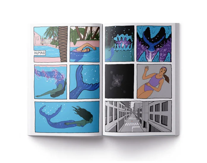 In the physical zine the H20 is cut out so you can see through to the next page